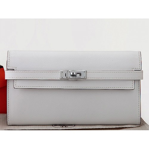 Portefeuille long Kelly Hermès en cuir de veau Epsom blanc