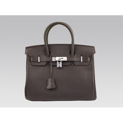 Birkin Hermès 30 cm en cuir Togo chocolat avec finitions argentées