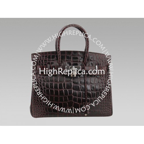 Notre réplique en image miroir du sac Birkin Hermes est fabriquée à partir d'un faux crocodile dans un brun chocolat plus profond, ce matériau est le nec plus ultra pour les sacs Birkin et extrêmement difficile à acheter comme un sac authentique. Soyez l'envie et l'émerveillement de beaucoup lorsque vous portez votre faux crocodile, réplique Hermes Birkin !