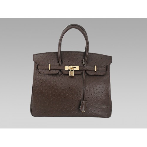 CUIR D'AUTRUCHE EN CHOCOLAT SOPHISTIQUÉ AVEC QUINCAILLERIE EN OR