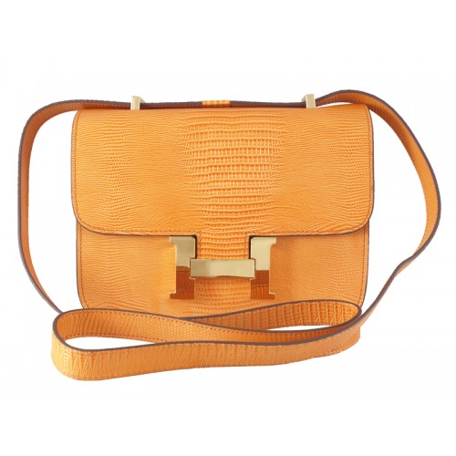 Sac bandoulière Hermès Constance 23 en cuir de lézard orange