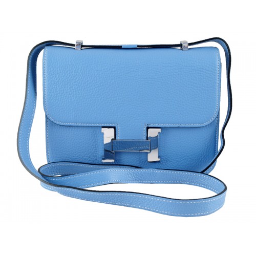 • Sac bandoulière Hermès Constance 23 en cuir Togo bleu