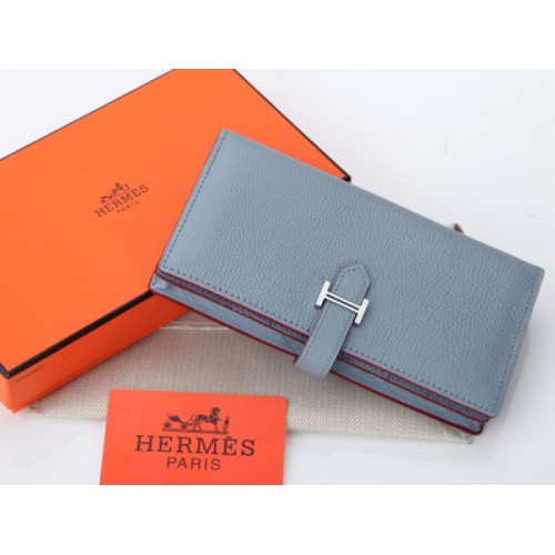 Portefeuille Hermès Dogon Togo Original en cuir de veau bleu clair, motif Bearn Japonaise, à deux volets
