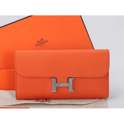 Portefeuille long Constance en cuir de veau Epsom orange d'Hermès