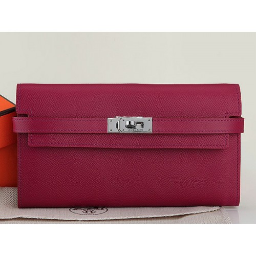 Portefeuille long Kelly Hermès en cuir de veau Epsom bordeaux