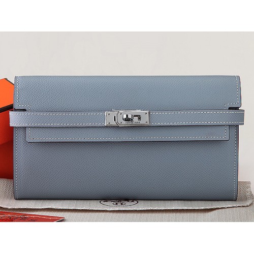 Portefeuille long Kelly Hermès en cuir de veau Epsom original, gris et bleu