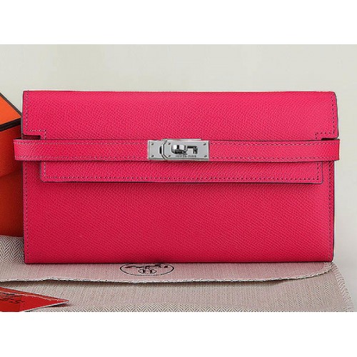 Portefeuille long Kelly Hermès en cuir de veau Epsom rose fuchsia