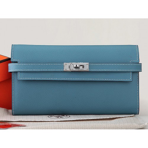 Portefeuille long Kelly Hermès en cuir de veau Epsom bleu clair