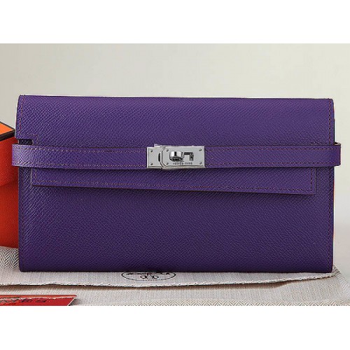 Portefeuille long Kelly Hermès en cuir de veau Epsom violet