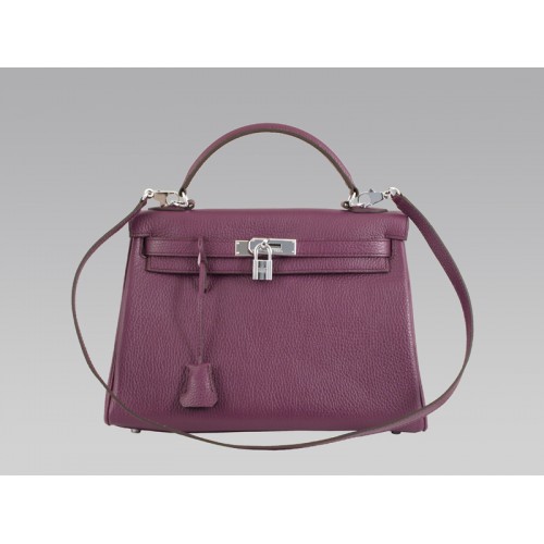 Hermès Kelly 32 cm en cuir Togo Clémence Raisin