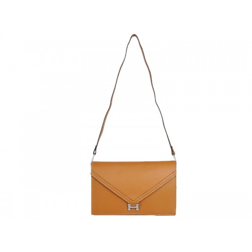 Pochette Hermès Pilot couleur camel avec finitions argentées