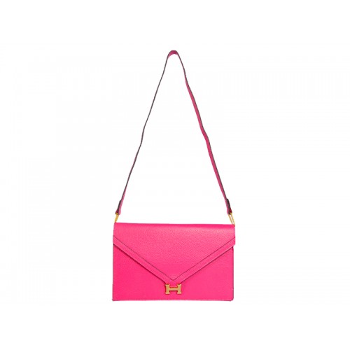 Pochette Hermès Pilot rose fuchsia avec finitions dorées