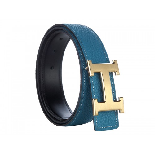Ceinture Hermès en cuir Togo avec boucle H dorée bleue