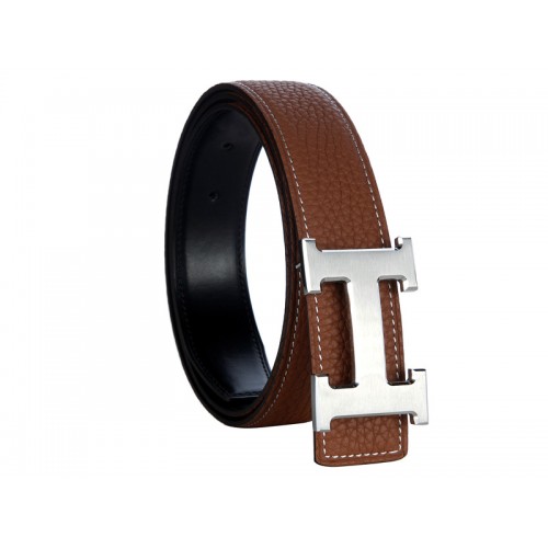 Ceinture Hermès en cuir Togo marron avec boucle H argentée