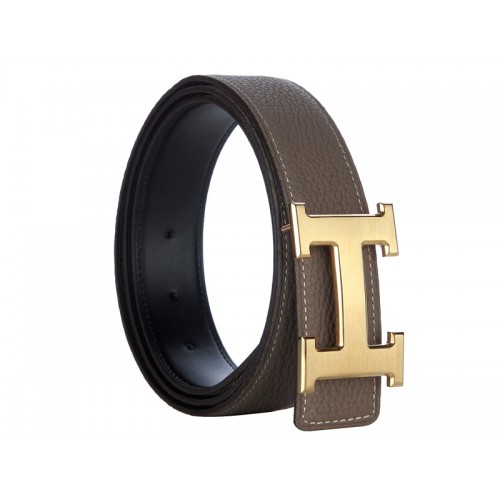 Ceinture large Hermès en cuir Togo kaki avec boucle H dorée