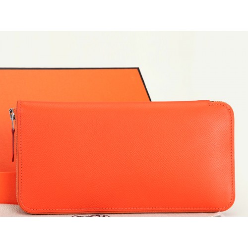 Portefeuille zippé Hermès Original en cuir de veau Epsom orange
