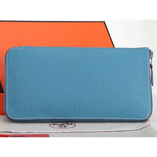 Portefeuille Hermès à fermeture éclair en cuir véritable bleu clair
