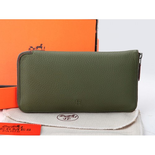 Portefeuille Hermès à fermeture éclair en cuir olive d'origine