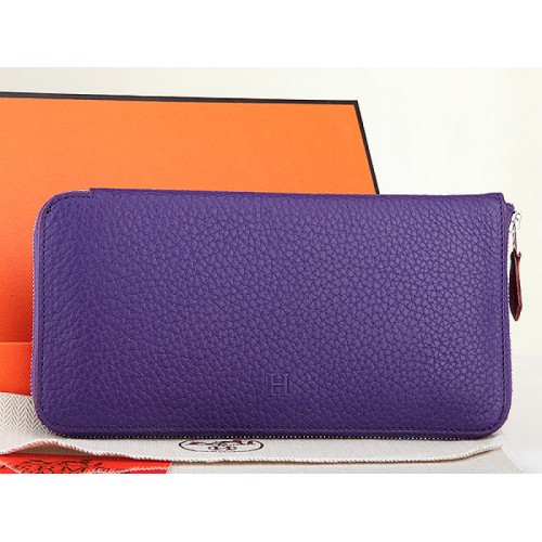 Portefeuille Hermès à fermeture éclair en cuir violet d'origine