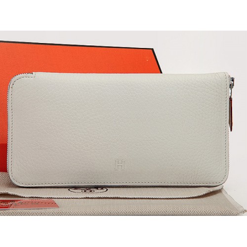 Portefeuille zippé Hermès en cuir original blanc pastèque
