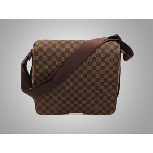 Toile Damier avec bordure en cuir de vache marron et quincaillerie en laiton poli