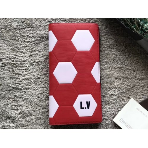 Faisant partie d'une édition spéciale célébrant l'association de Louis Vuitton avec la Coupe du Monde de la FIFA et le commerce Russie 2018, le portefeuille Brazza est disponible en cuir Epi avec un motif hexagonal. Ce motif est réalisé à l'aide d'une technique de gaufrage innovante pour évoquer l'aspect des ballons de football vintage. Ce portefeuille classique a un design élégant et un intérieur pratique et bien organisé.