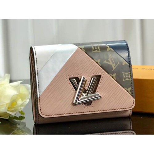 Portefeuille compact torsadé Louis Vuitton en cuir Epi blanc et rose m67799