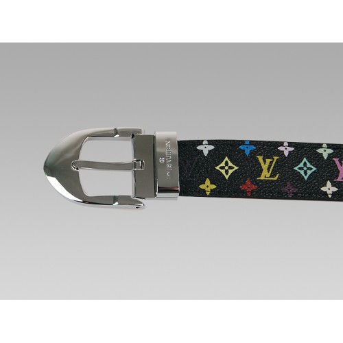 • Ceinture classique Louis Vuitton noire multicolore avec boucle argentée