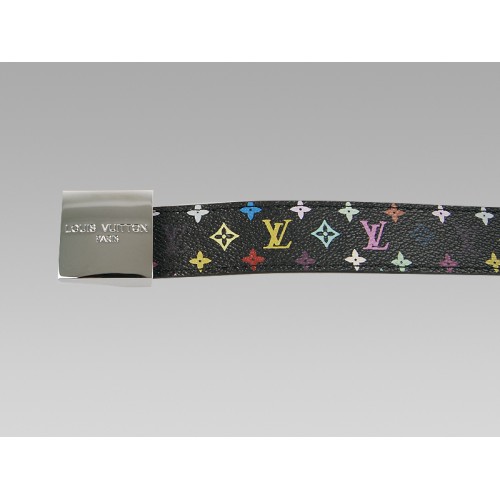 • Ceinture Louis Vuitton noire multicolore à boucle argentée