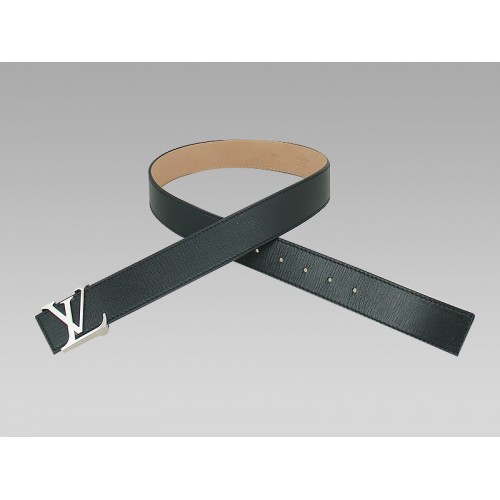Ceinture Louis Vuitton Initiales en cuir noir avec boucle argentée