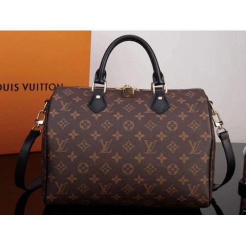 Sac Speedy Bandoulière 30 Louis Vuitton en toile Monogram avec finitions en cuir noir
