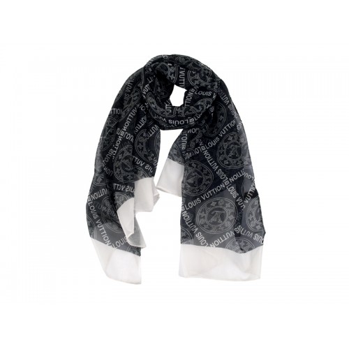 Écharpe Louis Vuitton Monogram Fleurs et Signature à effet perforé Noir