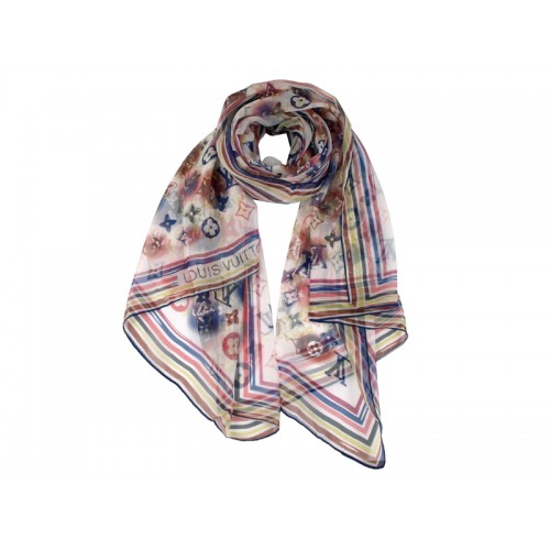 Taille : 140 X 140 cm/56 X 56 pouces50 % soie 30 % lurex 20 % laine Ce CHÂLE LOUIS VUITTON MON..