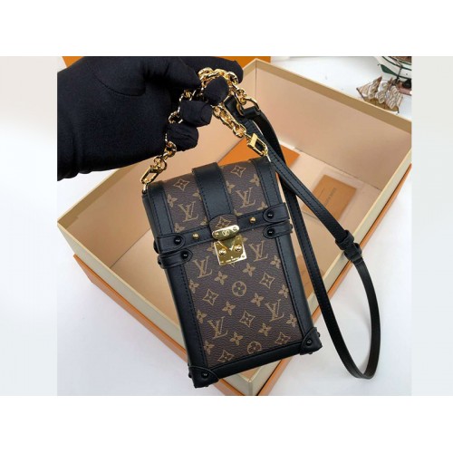 Le portefeuille chaîne Trunk en toile Monogram a été inspiré par l'embrayage Trunk emblématique conçu par Nicolas Ghesquière. Ce design élaboré présente des détails adaptés des malles historiques, notamment des goujons métalliques, un fermoir à verrouillage en S et une doublure à motif Malletage. Grâce à sa chaîne amovible, il peut être porté en pochette ou en sac à bandoulière.