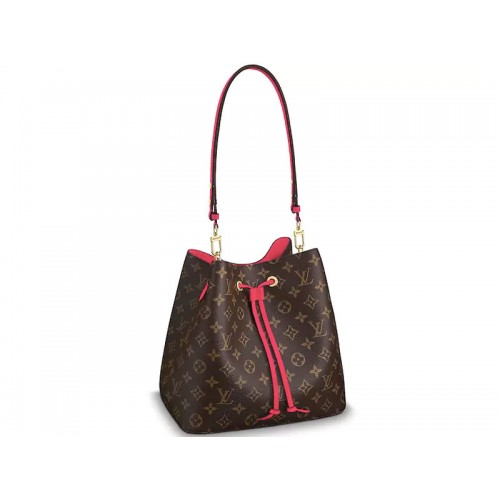Conçu en 1932 pour transporter des bouteilles de champagne, le Noé revient pour le printemps 17 sous le nom de Néonoé, un sac seau tendance en toile Monogram souple avec des accents colorés en cuir de veau et une sangle réglable qui s'allonge pour un transport moderne en bandoulière.