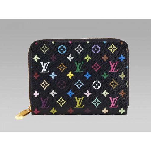 Porte-monnaie zippé Louis Vuitton Monogram Multicolore Noir Grenade