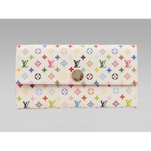 Portefeuille Louis Vuitton Monogram Multicolore Blanc Sarah Litchi