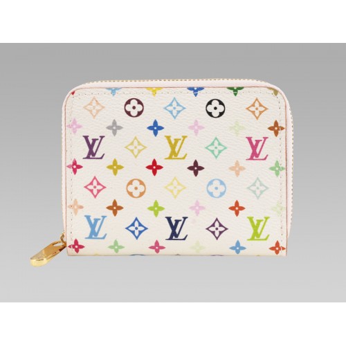 Porte-monnaie zippé Louis Vuitton Monogram Multicolore Blanc Litchi