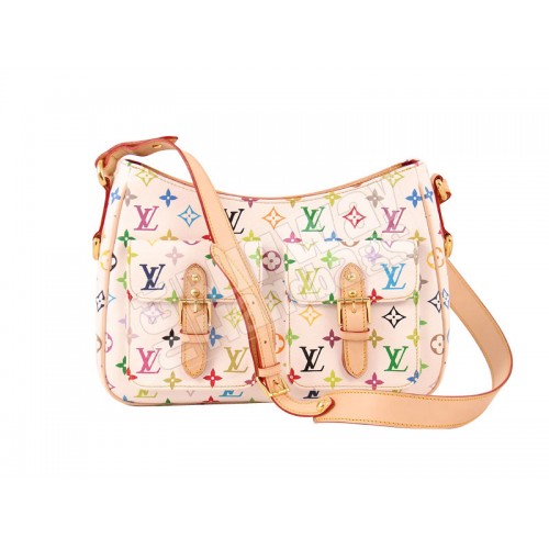 Louis Vuitton présente un sac à main décontracté en Monogram Multicolore regorgeant de détails riches. Les poches extérieures avec garniture en cuir de vache naturel se ferment avec des boucles dorées tandis qu'une étiquette nominative en cuir de vache naturel est suspendue sur le côté du sac. Fonctionnel et chic, le sac est fini avec des coutures jaunes emblématiques et des rivets dorés.