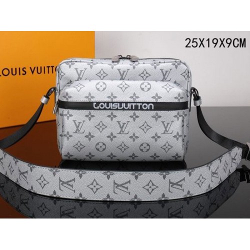 Avec la nouvelle sensation technique inspirée du sport dévoilée par Kim Jones au salon printemps-été 2018, ce Messenger Monogram Pacific Outdoor mélange la toile enduite Monogram classique et le Pacific Monogrand avec des sangles de sport, des fermetures éclair de plongée, des cordons et des pièces métalliques bleues, vertes et rouges. Forme de bandoulière facile et fonctionnelle.