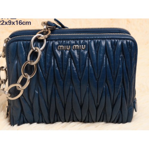 Sac bandoulière mini Miu Miu en cuir matelassé glacé bleu