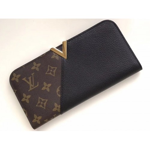 Le remarquable portefeuille Kimono combine une toile Monogram emblématique et du cuir de veau coloré pour un design graphique. La signature en V doré accrocheuse, inspirée d'une campagne publicitaire vintage Louis Vuitton, donne une finition parfaite à ce portefeuille féminin.
