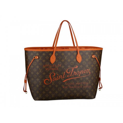 Capturer l'esprit de l'été.Louis Vuitton réinterprète son emblématique Neverfull en hommage aux stations balnéaires les plus célèbres du monde, Saint Tropez. Le lettrage de style vintage, la bordure en cuir orange et une doublure à imprimé floral Ikat ajoutent à l'attrait de ce sac fourre-tout en édition limitée, dont les caractéristiques pratiques et les proportions généreuses en font le choix parfait pour la ville et la plage.