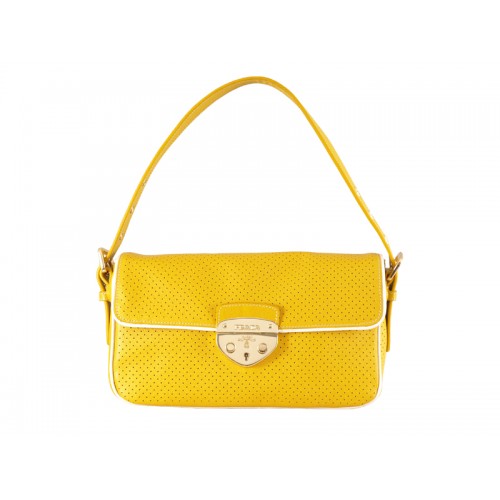 Sac bandoulière Prada Collection perforée en cuir de vachette jaune
