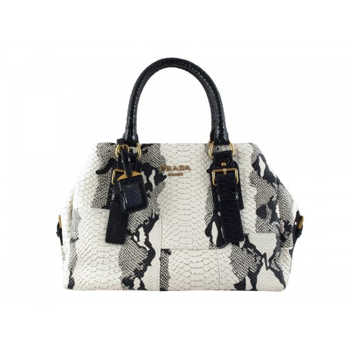 Sac cabas Prada en cuir de python blanc et noir