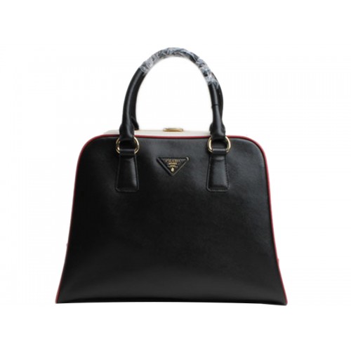 Sac Prada Saffiano à poignée supérieure encadrée noir