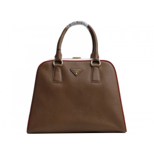 Sac Prada Saffiano à poignée supérieure encadrée couleur café