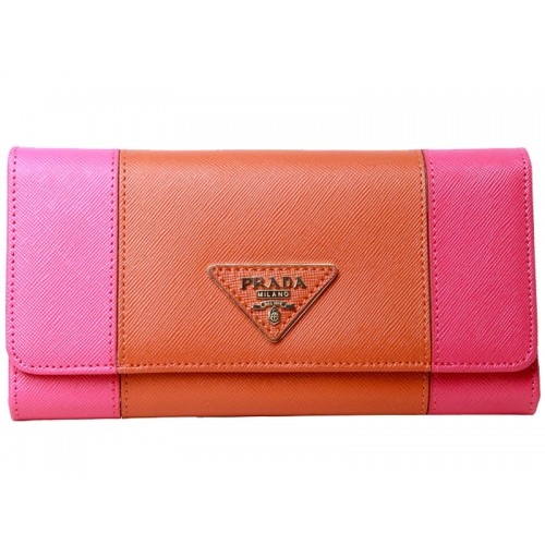 Portefeuille Prada en cuir Saffiano rose fuchsia et orange