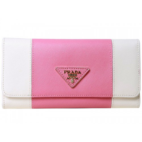 Portefeuille Prada en cuir Saffiano blanc à trois volets et rose