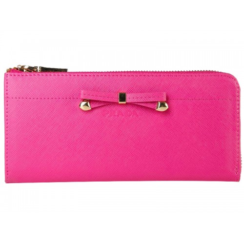 Portefeuille Prada Saffiano à fermeture éclair avec nœud décoratif rose fuchsia